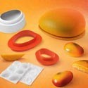 Moldes trompe-l'oeil para criar sobremesas no formato de fruta realista.