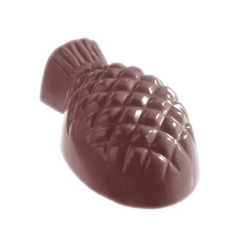 Os moldes de policarbonato trazem um brilho maior ao chocolate. Eles distribuem o calor do chocolate temperado de forma mais uniforme e reduzem a possibilidade de criar manchas na casca do chocolate devido à refrigeração. Uma vantagem adicional é a sua transparência, que permite que fique de olho nos seus chocolates durante o processo de resfriamento. Se eles ainda mostrarem algumas manchas escuras, o chocolate ainda não está totalmente duro e vai aderir ao molde. Basta de volta no frigorifico e dar-lhes mais alguns momentos para definir.