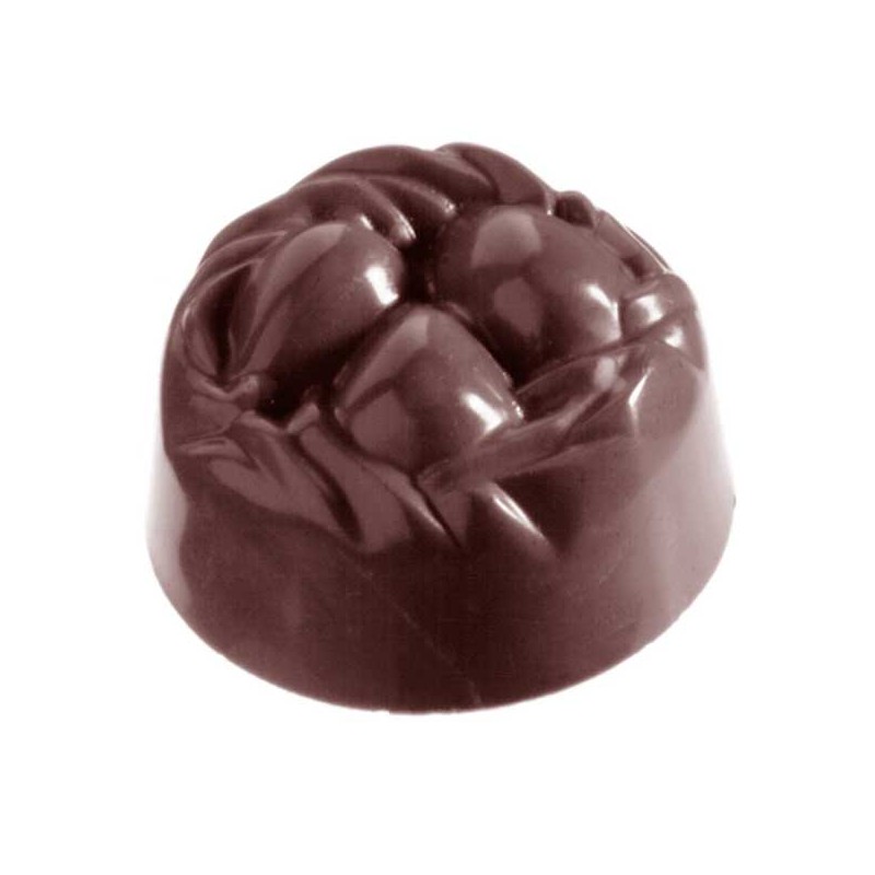 Os moldes de policarbonato trazem um brilho maior ao chocolate. Eles distribuem o calor do chocolate temperado de forma mais uniforme e reduzem a possibilidade de criar manchas na casca do chocolate devido à refrigeração. Uma vantagem adicional é a sua transparência, que permite que fique de olho nos seus chocolates durante o processo de resfriamento. Se eles ainda mostrarem algumas manchas escuras, o chocolate ainda não está totalmente duro e vai aderir ao molde. Basta por de volta no frigorifico e dar-lhes mais alguns momentos
