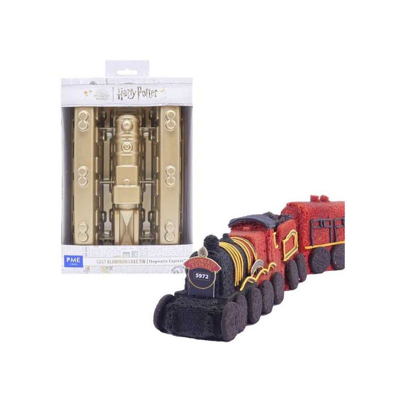 Inclui 3 cavidades: 1 x Locomotiva a carvão, 2 x carruagem de passageiros e sinalização reutilizável da Hogarts Express para dar o toque final perfeito ao seu bolo.