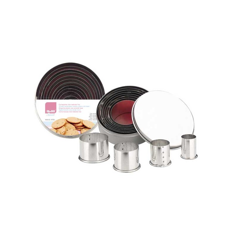 Conjunto de cortadores inox de 2-3-4-4,5-5-6-6,5-7-8-8,5-9 cm para pasta de açúcar ou outras massas.