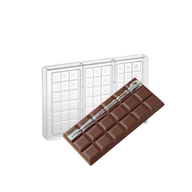 Molde para fazer 3 tabletes de chocolate de 150 X 70 X 11mm e aprox 110g