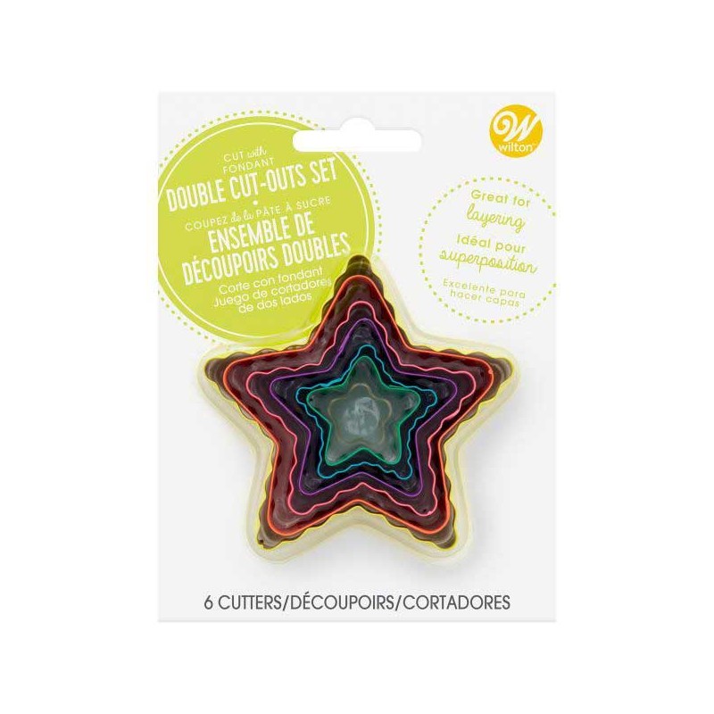 Conjunto de 6 cortadores de metal estrela frisados/lisos de 2.4 cm, 3.2 cm, 4.1 cm, 5 cm, 6 cm, 7.3 cm para pasta de açúcar, massa de bolachas e outros.