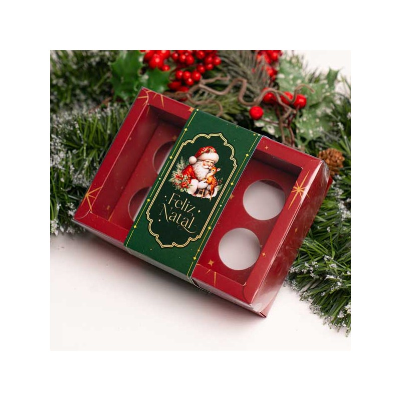 Caixa de Cartolina e tampa pvc para 6 brigadeiros alusivo ao Natal