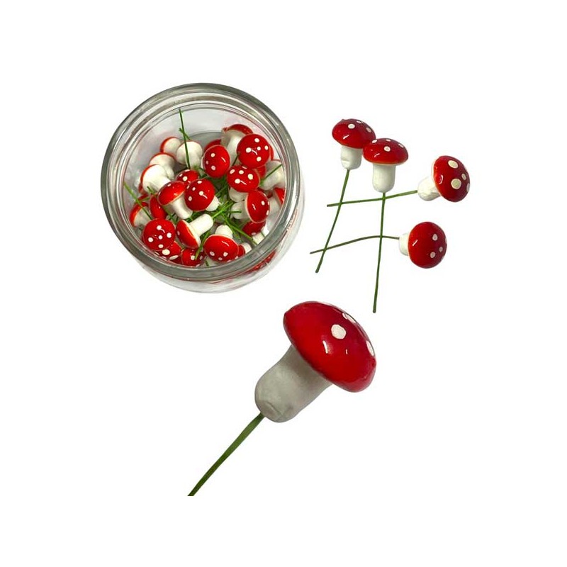 conjunto de 10 cogumelos de plástico (2cm) com espeto para decorações