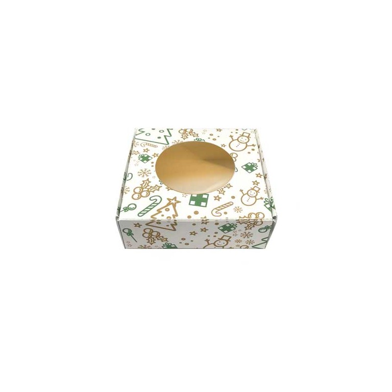 Caixa de Cartolina para take-away pastelaria, bombons, brigadeiros e outros doces. Um lado tem o tema Natal o outro kraft.