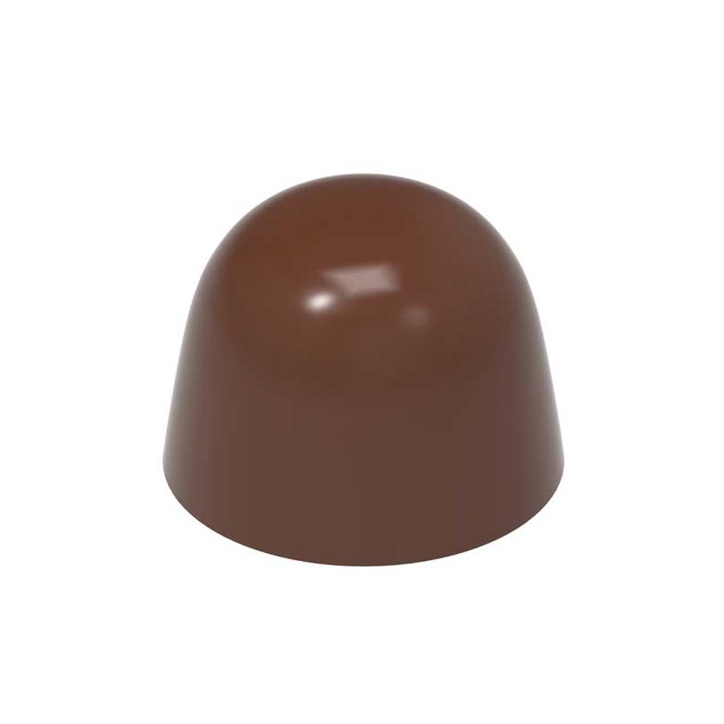 Os moldes de policarbonato trazem um brilho maior ao chocolate. Eles distribuem o calor do chocolate temperado de forma mais uniforme e reduzem a possibilidade de criar manchas na casca do chocolate devido à refrigeração. Uma vantagem adicional é a sua transparência, que permite que fique de olho nos seus chocolates durante o processo de resfriamento. Se eles ainda mostrarem algumas manchas escuras, o chocolate ainda não está totalmente duro e vai aderir ao molde. Basta por de volta no frigorifico e dar-lhes mais alguns momentos