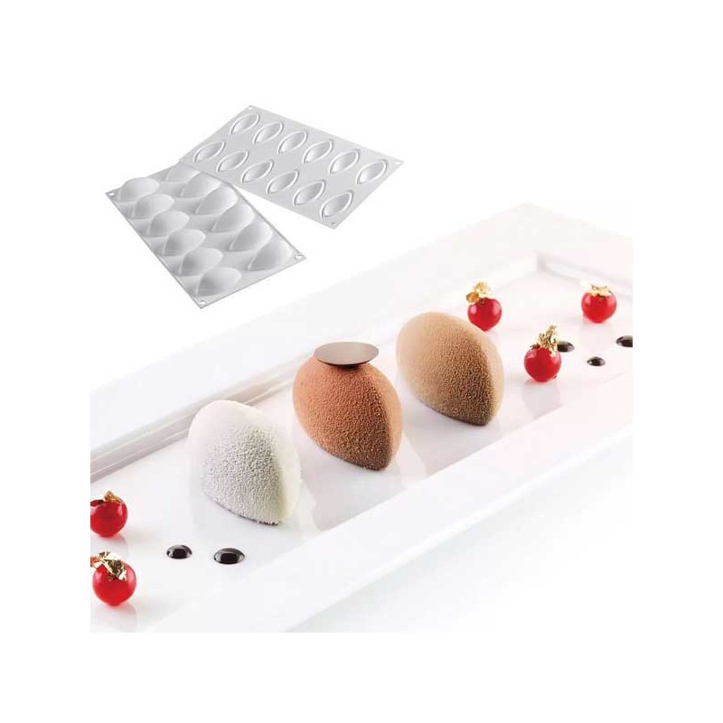 O molde QUENELLE24 permite fazer 12 quenelles doces com um volume de 24 ml cada, perfeitas e tridimensionais. A tridimensionalidade é possível graças a uma borda especial e inovadora colocada no interior do molde, que é capaz de dar um formato arredondado à base das preparações. Pode criar sobremesas quentes ou frias.