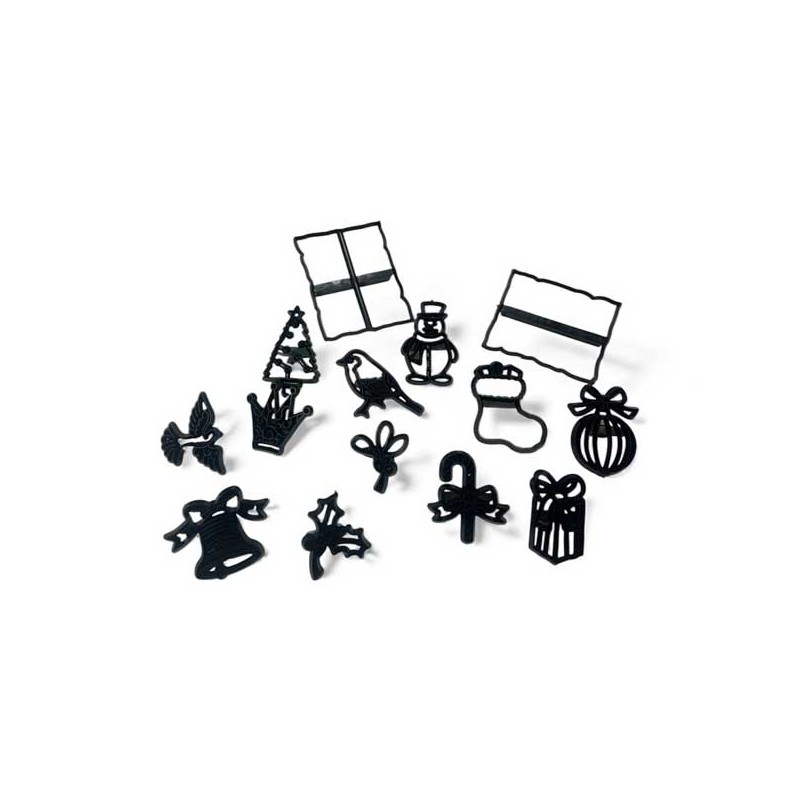 Conjunto de 14 cortadores de plástico para fazer decorações de Natal em Pasta de açúcar.