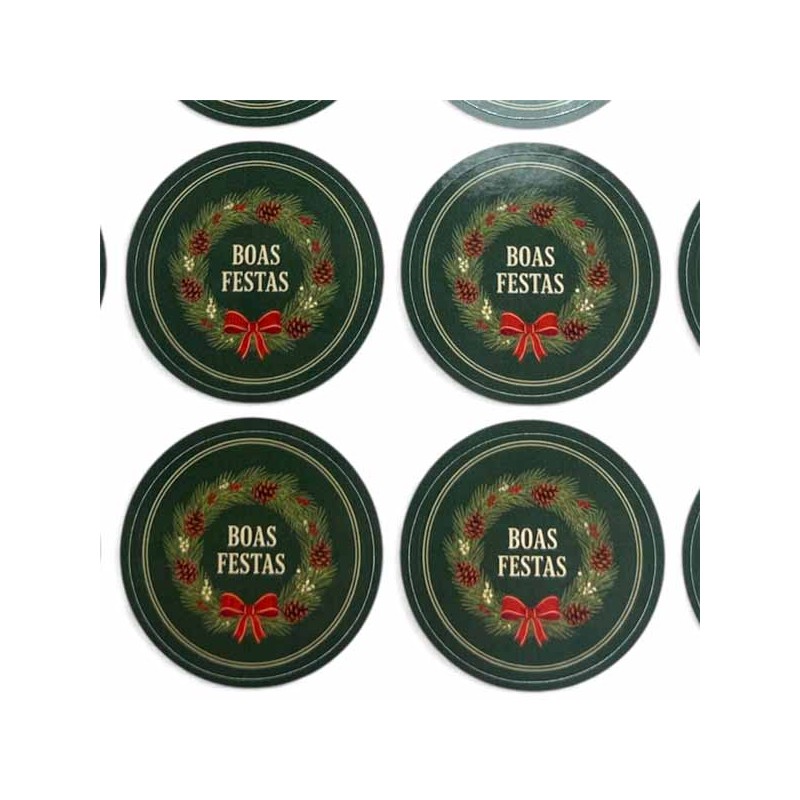 Etiquetas Coroa Natal Boas Festas Verde 4cm Cj.20