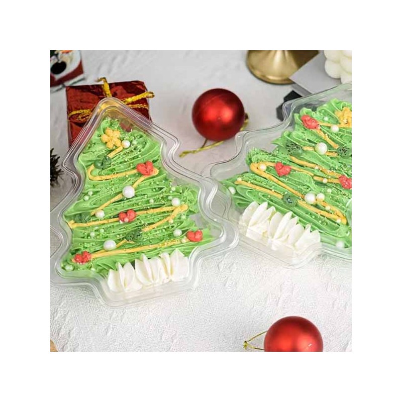 Caixa em plástico transparente 150ml arvore de Natal para as suas sobremesas.