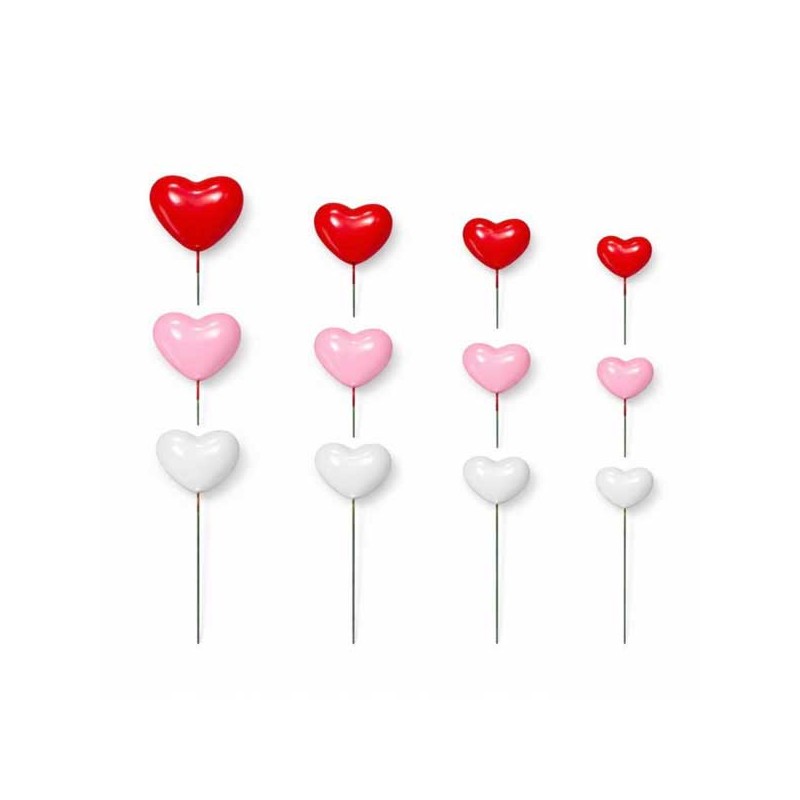 Corações com 2; 2,5; 3 e 4 cm