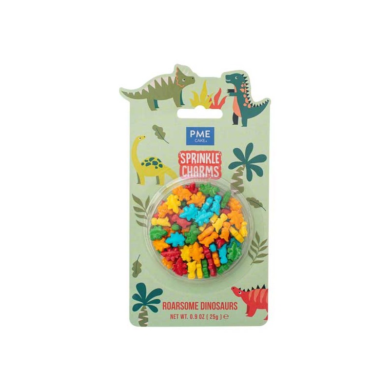 Adicione personalidade e diversão instantaneamente às suas criações com estes sprinkles Dinossauros Coloridos.