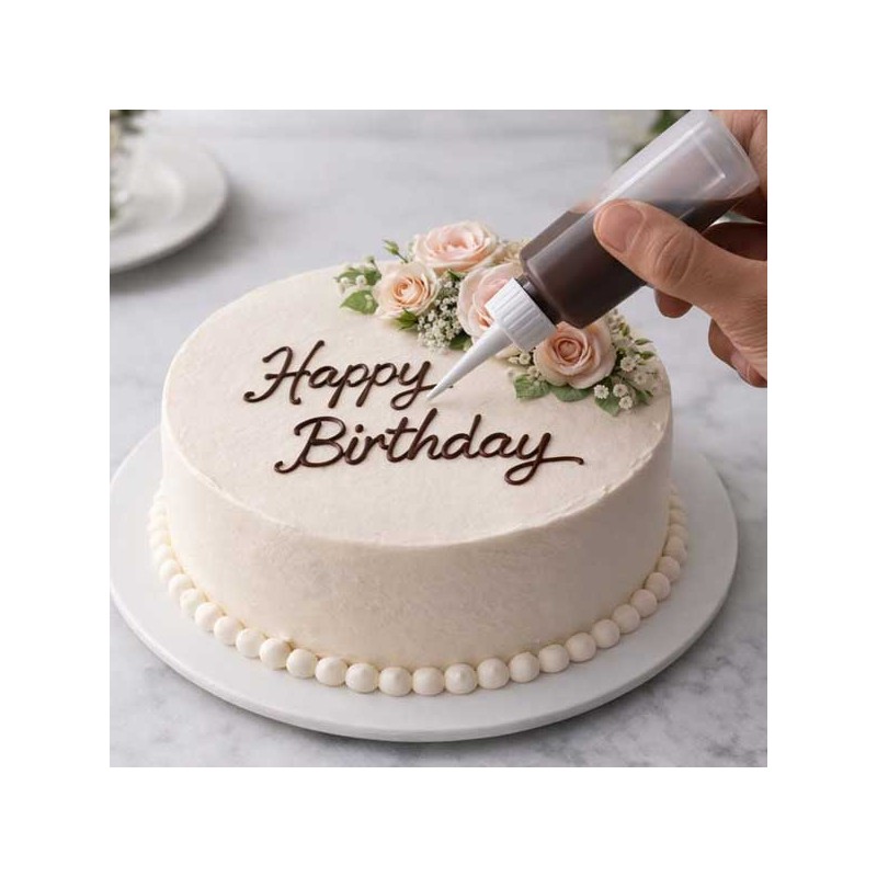 Bisnaga de decoração de plástico PE com ponta para escrever nos bolos ou outros doces.