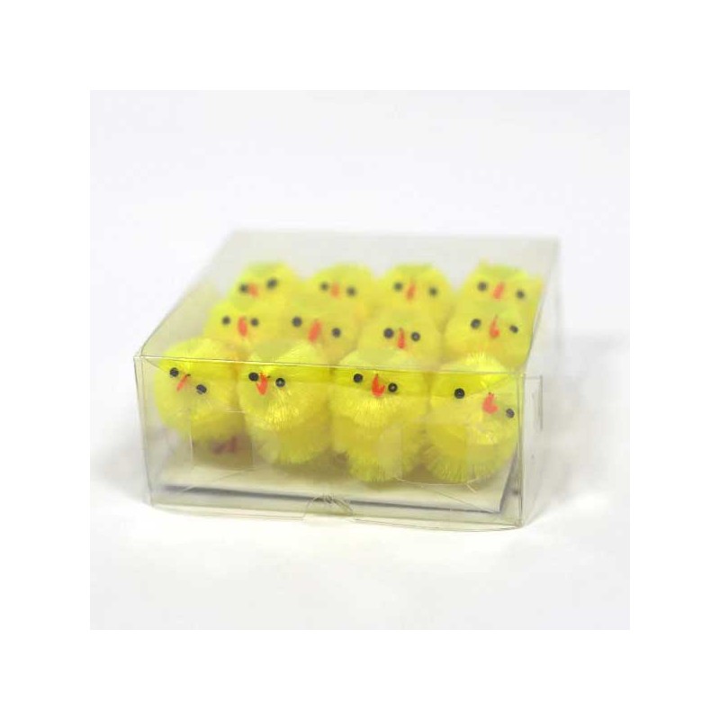 Caixa com 12 pintainhos de 4 cm para decoração de Pascoa.