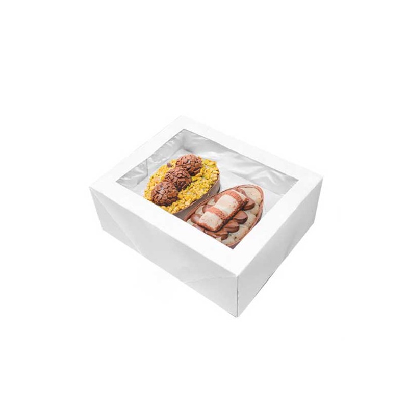 Caixa branca com janela com base para 2 ovos de Páscoa.