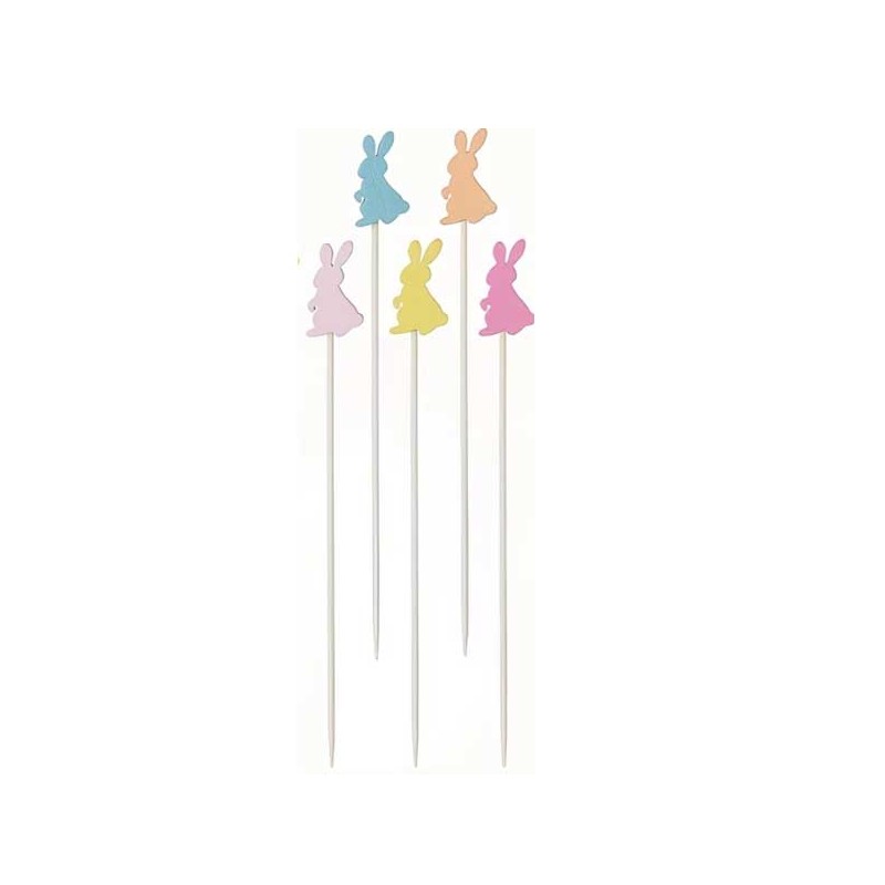 Conjunto de 5 palitos decorativos de bambu coelho Páscoa para sobremesas.