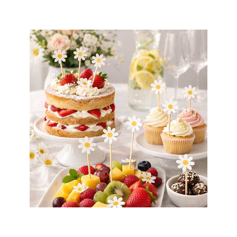 Conjunto de 5 palitos decorativos de bambu margaridas para sobremesas.