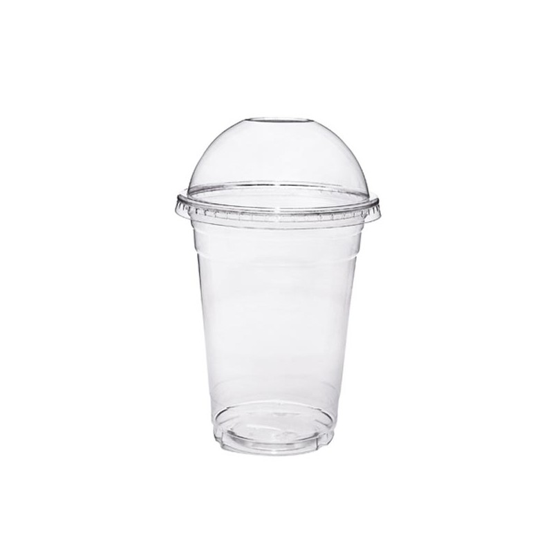 Copo de plástico com tampa oval sem furo para bolo no pote ou outras sobremesas.