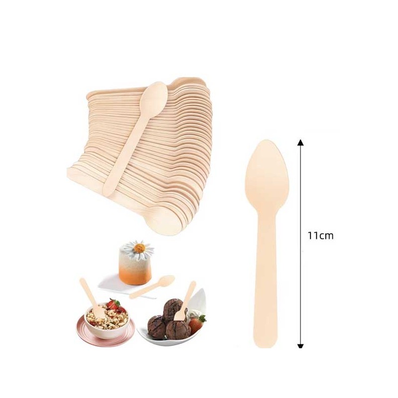 Conjunto de 10 colheres de madeira com 11cm para sobremesas.