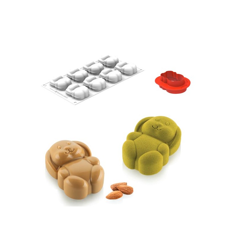 Rabbit 70 da silikomart nasceu da colaboração com o chef Juan Gutierrez, é composto por 8 cavidades de 70 ml e é ideal para mini bolos e semifrios elegantes. Também inclui um cortador plástico Abs, que permite criar bases ou recheios perfeitos para realçar a tridimensionalidade e o sabor das suas criações. Dimensões: 76 x 50 x 29 mm - Volume: 70 ml.