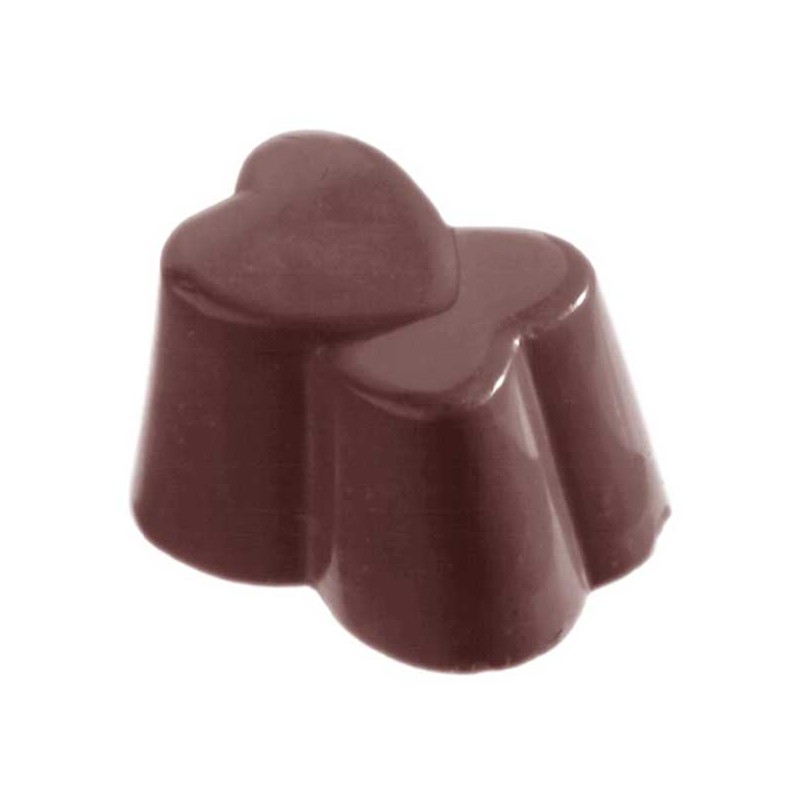 Forma chocolate world de Policarbonato para fazer bombons em formato coração duplo. Para fazer bombons para dia dos namorados, dia da mãe ou outras festividades.
